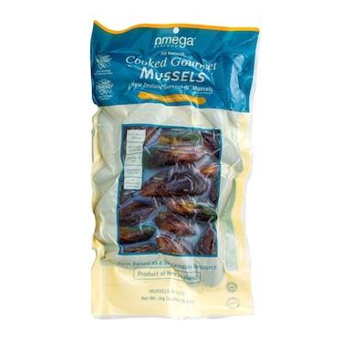 Omega Seafood Cooked Gourmet Mussels 1Kg