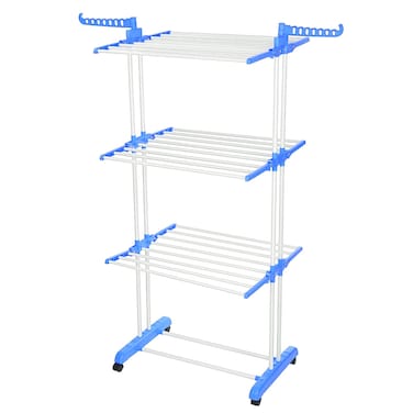 3 Tier Laundry Organizer Folding Drying Rack For Clothes Dryer Hanger Stand Blue
