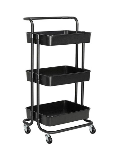3-Tier Utility Cart Rolling Storage Shelf With Handles 2 Lockable Wheels Black 86x42x30centimeter