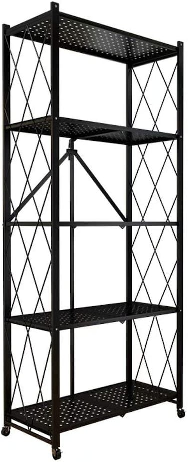 5 Layer Shelf Foldable Storage Shelving Unit with Wheels,Metal Storage Rack Display Rack for Garage Kitchen Pantry Closet Laundry