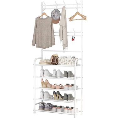 Aiwanto 5 Tier Shoes And Coat Rack Shoes Storage Shelf For Home (White)
