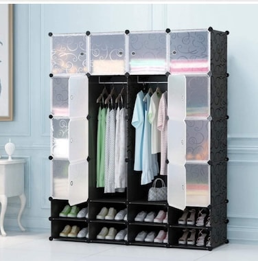 Generic 16 Cube Folding Pp Panel Diy Living Room Bedroom Plastic Wardrobe Cabinet Wardrobe With 2 Clothes Hanger And Shoes Rack