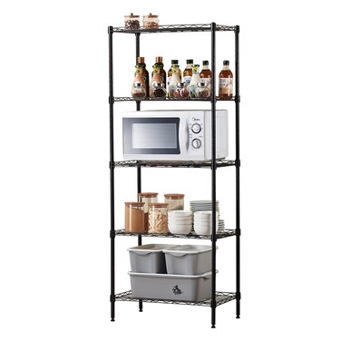 Generic-5 Tier Wire Shelves Heavy Duty Height Adjustable Storage Wire Shelf Shelving Rack Microwave Stand with 4 Side Hooks Leveling Feet