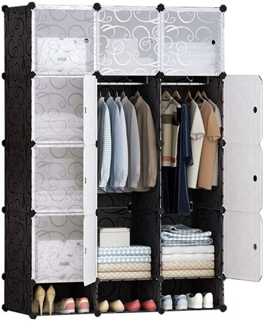 Generic Diy Modular Shelving Storage Organizer 15-Cube, Extra Large Portable Wardrobe With Clothes Rod, 12 Cubes Organizing Cabinet + 3 Cubes Shoe Rack