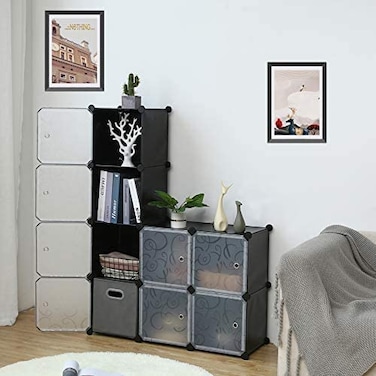 Generic Roland Cube Storage Organizer, 8- Cube Diy Plastic Closet Cabinet, Modular Book Shelf Organizer Units, Storage Shelving Ideal For Bedroom Living Room Office With Doors, Black