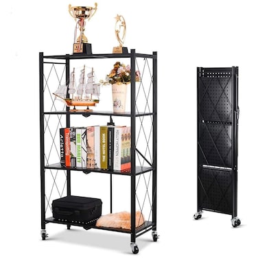 Introducing the HEXAR® 4 Tier Foldable Storage Organizer, a Heavy-Duty Metal Rack Storage Shelving Unit with Wheels. This versatile shelving unit is designed to offer convenient storage solutions in various areas of your home, including the kitchen, living room, bedroom, and more. Whether you're looking to organize your kitchen, bedroom, living room, or any other space, the HEXAR® 4 Tier Foldable Storage Organizer is the perfect solution.