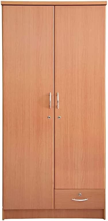 Karnak 2 Door Wardrobe features a Beige finish that ensures it blends well with most interiors. Made of Good quality wood, this wardrobe is strong enough to hold all your essentials. It features a spacious interior with multiple shelves so that you can arrange your clothes in a systematic manner. This wardrobe also features a hanging rod that you can use to hang all your formal clothes. It also has a drawer that you can use to keep your cash or jewellery. The Beige finish of this furniture ensures it matches Multiple Color homes. Made with good quality material ensuring it's longevity and durability Profound craftsmanship renders enhanced resilience to the structure. Amp up your bedroom decor with this two-door wardrobe with storage. Showcasing a simple yet classy look and wood crafting, this durable wardrobe is sure to leave you enticed. Furthermore, the foil finish used on the unit enhances its overall appeal. You can wipe clean this modern wardrobe featuring comfortable handles for upkeep. The product images have props used for illustrative purposes.