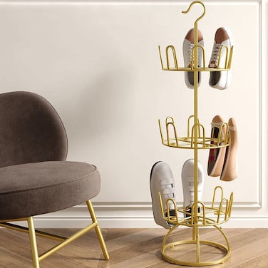 Shoe Drying Rack Dry Shoe Rack Organizer Hanger Outdoor Balcony Hanging Shoe Rack Rotating Iron Slipper Rack Floor-to-ceiling Multi-layer Sandal Shelf Drying Shoe Artifact (A-3Layer)