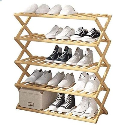 SKY-TOUCH Bamboo Shoe Rack Storage Home Folding Shoe Rack Affordable Shoe Rack Multi-Layer Storage Simple and Convenient (Size : 70cm)