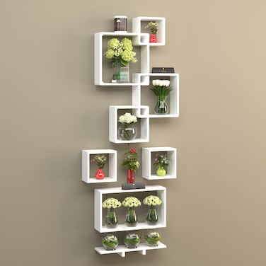 Wooden Rafuf Designer Intersecting Wall Shelves (Set of 8)