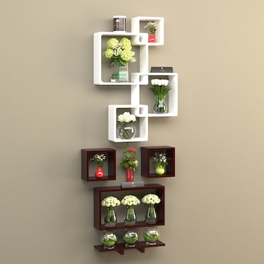 Wooden Rafuf Designer Intersecting Wall Shelves (Set of 8)