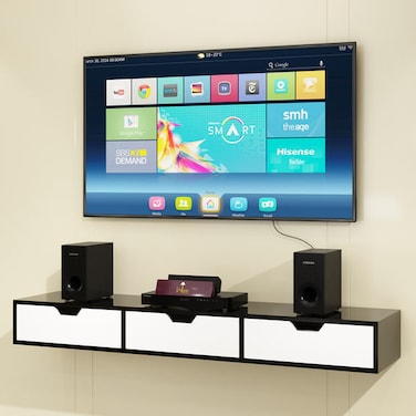 Wooden Twist Exclusively Launched Engineered Wood Wall Mounted TV Unit, Cabinet Stand, with 3 Drawers Wall Shelf for Living Room (Black & White)