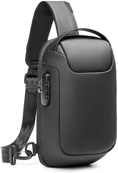 A completely anti-theft men's bag for storing important personal papers, equipped with a USB port, black color, model No. AP-37