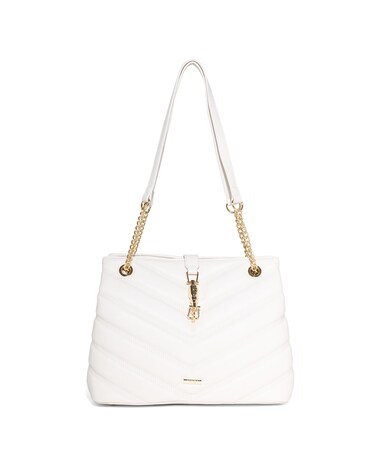 AMICA Amélie Women Chevron Quilted Tote bag with 3 Spacious Comaprtments with Leather & Chain Adjustableble Strap in White Ivory