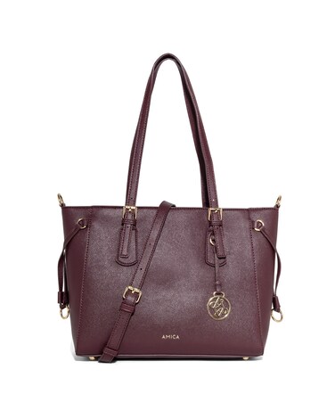 AMICA Colette Women's Tote Bag in High Quality Tote Bag with Gold Charm in Plum Red