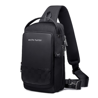 Arctic Hunter Cross body Sling Bag Water Resistant Anti Theft Unisex Small Shoulder Bag with Built in USB Port for Business Travel XB001005 Black