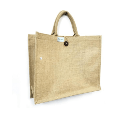 Generic Natural Jute Tote Bag With Cotton Handles Buttoned Closure Bags Size 18"W X 14"H X 6"