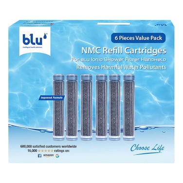 Upgrade your shower experience with the Blue NMC Refill Iconic Shower Filter Hand Held Cartridges in Silver. These 6 PCS cartridges are designed to effectively reduce chlorine and impurities in your water, leaving your skin and hair feeling softer and healthier.
