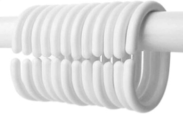 SPECIFICATIONS- Elevate your bathroom décor with this set of 12 white plastic shower curtain rings. Designed for convenience, these durable hooks effortlessly slide along your shower rod, ensuring easy opening and closing of your shower curtain. The classic white color adds a clean and timeless touch to enhance your bathroom aesthetics.