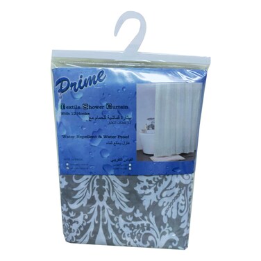 Prime Textile Shower Curtain With 12 Hooks Grey 180x200cm