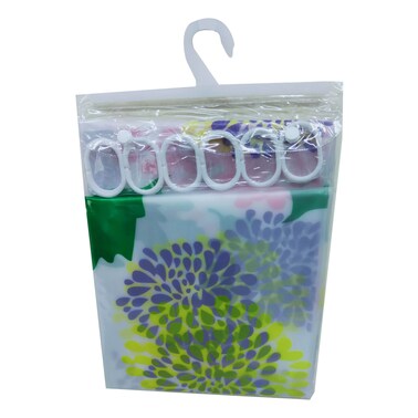 Prime Peva Shower Curtain With 12 Hooks Multicolour 180x180cm
