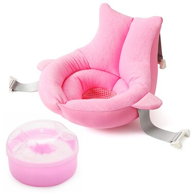 - Perfectly sized to cradle newborns and infants, our plush and supportive sink bather is a must-have for your babys first baths with a soft terry surface and a padded whale tail to protect babys head, the cushioned design fits in bathroom and kitchen sinks to cradle infants for comfy and convenient bathing. The mesh bottom drains water quickly and the Velcro strap makes it easy to hang dry The soft powder puff applies dusting powder on your baby's body evenly and smoothly. Put proper amount of talcum powder into the box, and then gently pat baby's skin with powder puff.