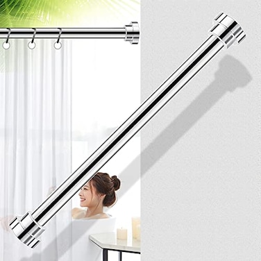 Uaejj Shower Curtain Rod No Drilling, Extendable Stainless Steel Curtain Pole Telescopic Tension Rod, Hanging Rail For Window Bathroom Shower Wardrobe Doorway, Adjustable Length (155~260cm, Silver)