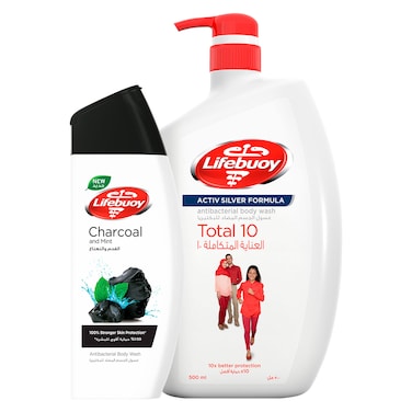 Lifebuoy Total 10 Antibacterial Body Wash 500ml With Charcoal And Mint Body Wash 280ml