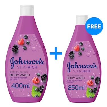 Johnson's Vita-Rich Replenishing Body Wash With Raspberry Extract 400ml+250ml