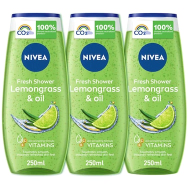 NIVEA Shower Gel Body Wash Lemongrass & Oil 250ml Pack of 3