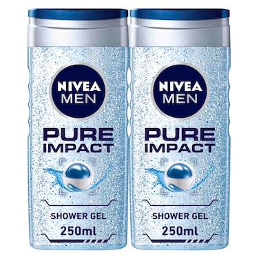 NIVEA MEN 3in1 Shower Gel Pure Impact Fresh Scent 250ml Pack of 2