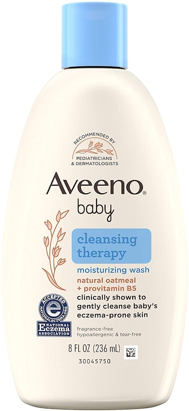 Product Description: Cleanse and soothe baby's sensitive skin with Aveeno Baby Cleansing Therapy Moisturizing Wash. Designed for baby's sensitive, eczema-prone skin, this dermatologist- and pediatrician-tested bath wash cleanses and soothes irritated and dry skin, leaving skin feeling comfortable. It's accepted by the National Eczema Association and clinically shown to gently cleanse baby's eczema-prone skin. The gentle, baby body wash is formulated with finely milled natural oatmeal, known for its soothing and nourishing properties, along with provitamin B5 and rich emollients. Hypoallergenic, pH-balanced, and fragrance-free, the baby bath wash is tear-, sulfate-, soap-, paraben-, phthalate-, and phenoxyethanol-free. To use, squeeze onto hands or a wet washcloth and apply to baby's skin, building a creamy lather and rinse.