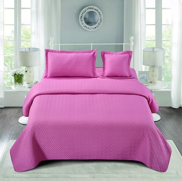 4 Piece Ultrasonic Compressed Comforter/Quilt/Bedspread Set Single Size ( Comforter + Fitted Sheet + 1 Small Pillow Case + 1 Large Pillow Case) Oriental Pink
