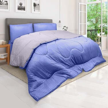 This Reversible Comforter Set from Hotel Linen Klub is the perfect addition to any bedroom. It is made from 100% microfiber, making it soft, durable, lightweight, and cozy. It is designed to keep you warm and comfortable throughout the night. The modern stripe design is sure to give your bedroom a stylish look. The lightweight material makes this comforter easy to transport, so you can bring it to where you need it most. With this comforter set, you can enjoy a sound sleep and wake up feeling refreshed and prepared to tackle the day. Get this Reversible Comforter Set from Hotel Linen Klub today and see the difference it makes to your bedroom.