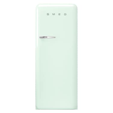 The Smeg Retro Style Single Door Refrigerator FAB28RPG5GA in Pastel Green is a charming addition to any kitchen. With its 270L capacity, this fridge offers ample space for all your fresh produce and beverages.