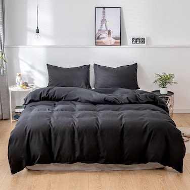 Luna Home Premium Single Size 4 Pieces Bedding Set Without Filler, Plain Black Color