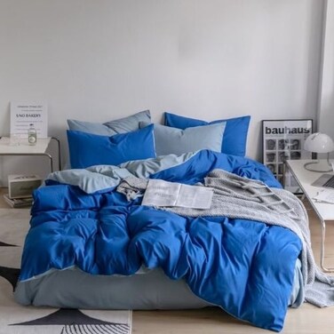 Luna Home-Premium Single Size Korean Reversible Bedding Set, Plain Grey and Blue Color.