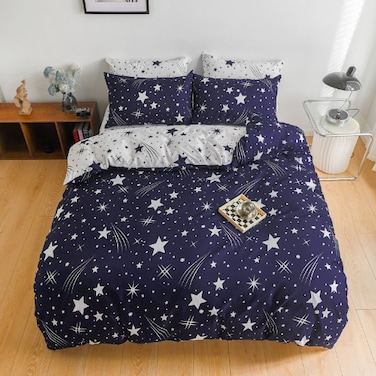Single size 4 pieces Reversible Navy Blue Sky Stars Fall Design, Duvet cover without filler.
