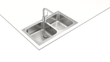 - Classic Series Stainless steel sink Two bowls Inset installation 3½" manual basket waste with siphon 190 mm deep bowls 90 cm base unit