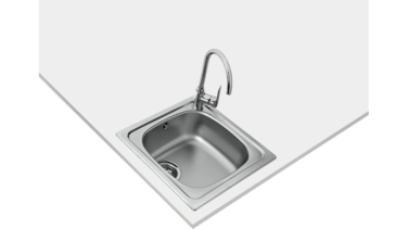 • Stainless steel sink, Matt finish One bowl Inset installation 3½" manual basket waste with overflow and siphon 45 cm base unit