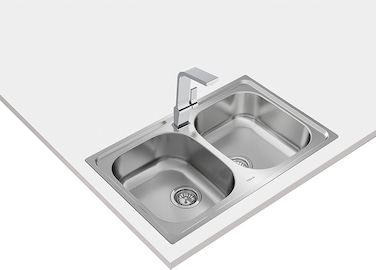 Stainless steel sink Two bowls Polished finish Inset installation with 3½" waste hole 170 mm deep bowls, 80 cm base unit.