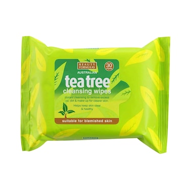 - Beauty Formulas cleansing facial wipes contain Australian tea tree oil which is known to be a natural antibacterial agent with antiseptic properties
