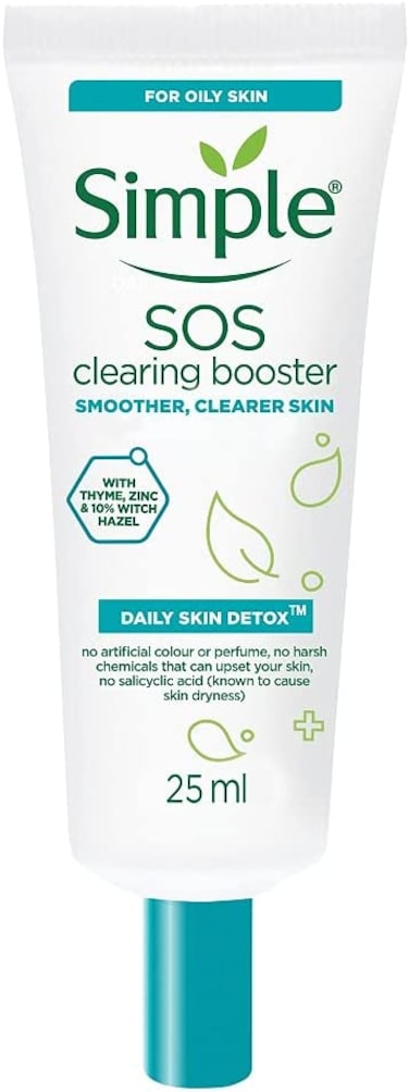 - <li>Introducing Simple Daily Skin Detox SOS Clearing Booster, in a new super smart multi-use format: ideal for controlling oily t-zones or soothing localised blemishes<li>This oil control primer provides all-day shine control for oil-prone areas<li>An anti blemish spot cream clinically proven to reduce blemish redness and soothe skin<li>With an ultra-light liquid gel formula concentrated with 10% witch hazel, providing long-lasting results anst oily skin and blemishes whilst being gentle on your skin<li>With daily use, Simple Booster helps fight the appearance of new blemishes and clogged pores for visibly clearer, fresh and balanced skin - day after day.Our Simple Booster is a face cream made with no harsh chemicals, artificial perfume or colour, no drying salicylic acid or alcohol, and no mineral oil