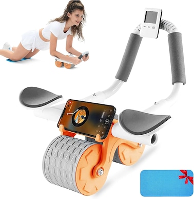Automatic Rebound Ab Abdominal Exercise Roller Wheel, with Elbow Support and Timer, Abs Roller Wheel Core Exercise Equipment, for Men Women