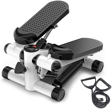- 【Great Hydraulic Resistance System】Mini stepper built with a Great Hydraulic Resistance System, ensure an even pedal resistance, provides a stable and safety workout environment, meanwhile its buffer and steadiness protect your knees and ankles from getting injuried. 【LCD Monitor】Press the Red Button, presents Scan, Count, Time, Calorie, REPS/Min in sequence. You can monitor and record your fitness data, which help to go on your next training plan. 【Height Adjustment】With the adjustable knob you can adjust the height of this stair stepper basis of user's condition and different exercise styles. The higher the stepper, the harder it is, in contrast more easier. 【2 Resistance Bands】is detachable and easily assembled, workout with this indoor stepper machine can help practicing arms, waist, ab, legs and buttocks. 【Anti-slip Foot Pedal】This stepping exercise equipment use anti-slip widen footplates, which protect user's safety.
