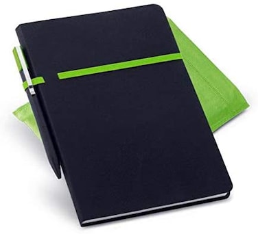- Notepad. Imitation leather. With 96 plain sheets. Supplied in non-woven pouch. Includes ball pen. Notepad: 140 x 210 mm | Ball pen: ø10 x 138 mm | Pouch: 185 x 240 mm</br></br><li>Notepad. Imitation leather. <li>With 96 plain sheets. <li>Supplied in non-woven pouch. <li>Includes ball pen.