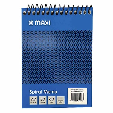 The Maxi A7 Ruled Notebook is a compact notebook with 50 sheets of ruled paper.