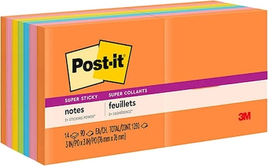Post-it Super Sticky Notes -14 Pads, 90 Sheets/Pad- Total of 1260 sheets