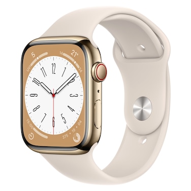 The Apple Watch Series 8 GPS + Cellular 45mm Gold is a stylish and advanced smartwatch that offers both GPS and cellular connectivity.