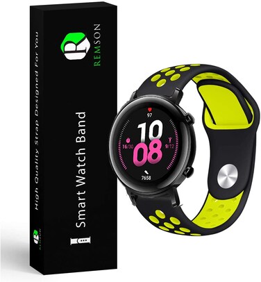 Remson Huawei Watch Gt2 42mm Silicone Sports Waterproof Watchband 20mm (Rm-1155 / Black/Yellow)